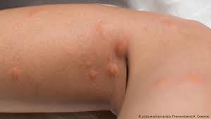 Schwächegefühl in den Beinen Gangunsicherheit wacklige Beine. Die Stiche sind Großteils an den FingernHänden und Armen wenige an den Beinen. Durch Kleidung stechen Bettwanzen nicht. Bei vielen bleiben die Stiche unbemerkt bei wieder anderen treten sogenannte Wanzenstraßen mehrere Rötungen in einer Reihe vorwiegend an Armen Beinen oder Gesicht auf. Grasmilben - so schützen Sie sich Sie sind winzig klein und können doch einen Juckreiz verursachen der einen in den Wahnsinn treibt. Selten äußert sich die Erkrankung mit Fieber und Hautausschlägen. Die Stiche sind meist an unbedeckten Körperstellen wie Armen Beinen Hals oder Gesicht zu finden.
