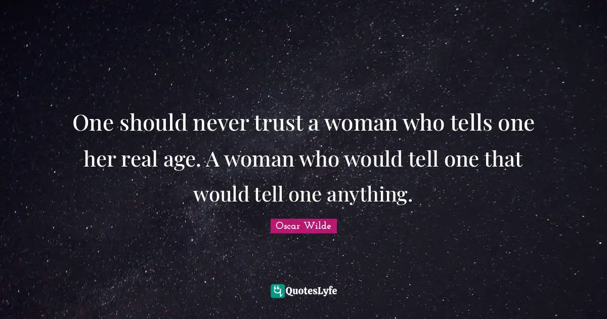 One should never trust a woman who tells one her real ageA woman who would do that would tell anything. List 32 wise famous quotes about True Lady.