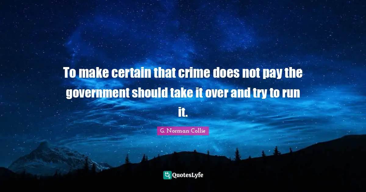 Crime doesn t pay quote. The reason crime doesnt pay is that when it does it is called a more respectable name. The first one shouted Nobody move. Crime does not pay as well as politics.