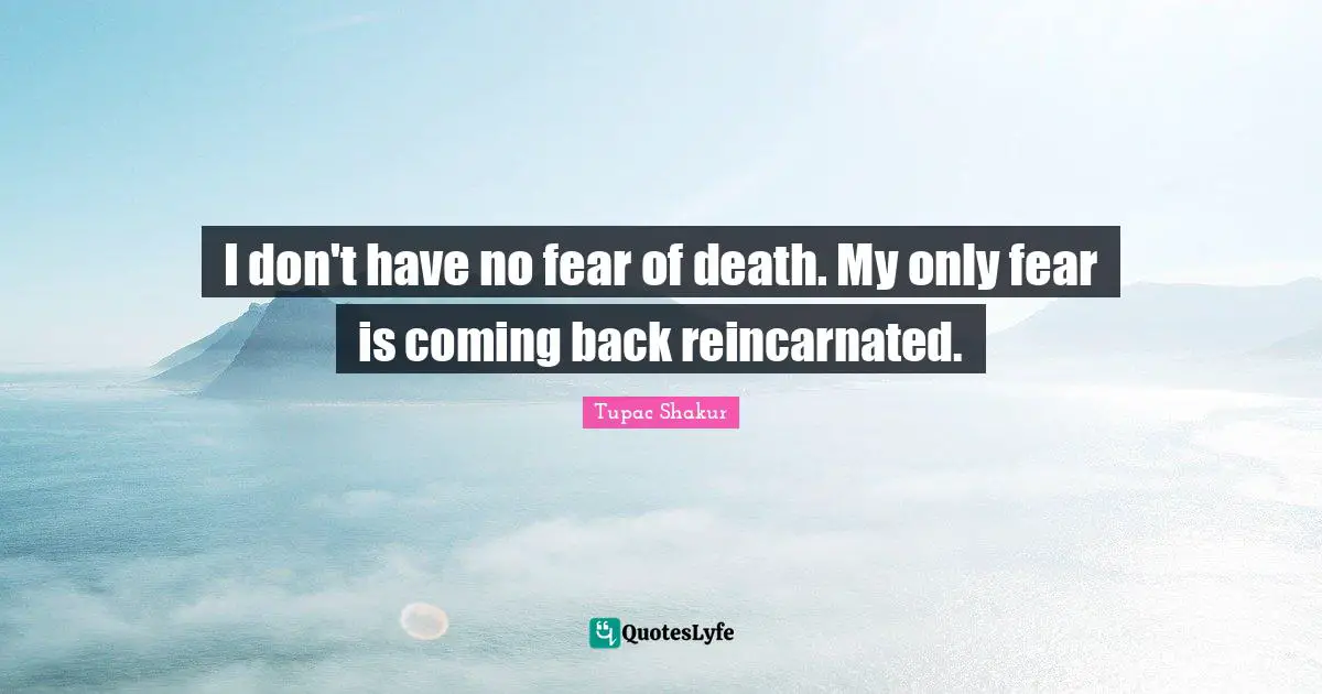Tupac Amaru Shakur born Lesane Parish Crooks. Shakur continues to be considered an influential rapper today and has been inducted into the Rock and Roll Hall of Fame. So according to him his only fear of death is his rebirth in this world. Trying to put the pieces together justifying what couldve wouldve happened. Dreams are for real Tupac Shakur. My only fear is coming back reincarnated Tupac Shakur. Conspiracy was a re-edit and reconstruction of Tupac Assassination.