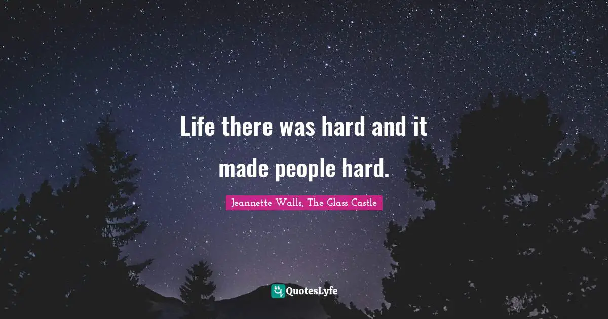 I told Mom that I would protect it from the wind and water it every day so that it could grow nice and tall and straight. Lori Brian and I pulled back the covers and tried to drag her out but she wouldnt budge - Jeannette Walls. The Glass Castle Quotes. He just liked to say they were because it was more fun having the FBI on your tail than bill collectors. Quote 10 Quote 9 But on that first day of school Mom refused to get out of bed. I was sitting in a taxi wondering if I had overdressed for the evening when I looked out the window and saw Mom rooting through a Dumpster. 20 of the best book quotes from The Glass Castle.